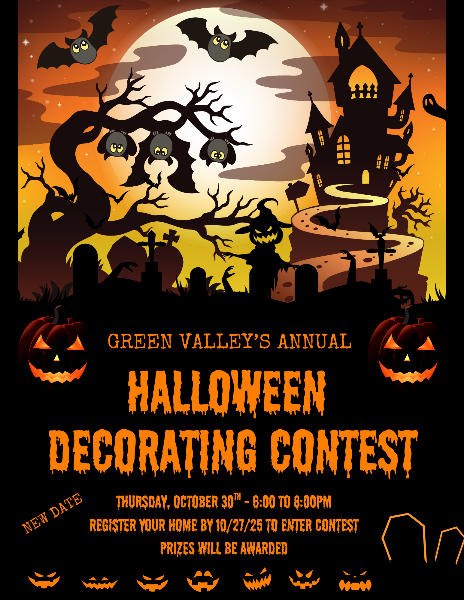 Highlights & Upcoming Events: Join our Facebook Page - GREEN VALLEY REC (Rei. only) POOL UPDATES: Green Valley Pools are for residents and their guests only. They are not available to the general public for open swim. All pools are open and heated for Green Valley residents. FALL STROKE & WATER POLO CLINIC - September 8 to October 30, North Pool Flyer TRUNK OR TREAT - Friday, October 24, 5-7pm, Cox School Parking Lot - Cars Needed!! Flyer HALLOWEEN DECORATING CONTEST -New time! Night before Halloween - October 30, register your home by October 27 Flyer DRIVE THRU FOOD DRIVE - Sat., Nov. 15 Flyer PLAY GROUP - Weds, 9:30 to 11:30am, Community Room, begins September 10 Flyer Aqua Tone Classes are offered at the North Pool on Tues, Thurs & Sat at 10:00 a.m. PiYo Live & SOULFusion classes are offered in the Family Clubhouse, Tues 4-5pm & Thurs 5-6pm Book Library is open during office hours. Green Valley Swim Team - www.gvdolphins.org See Gazettes in Newsletter link for additional information!