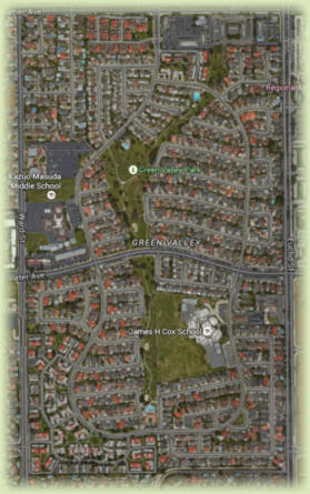 The community is located in Northeastern Fountain Valley (between Warner & Talbert and Euclid & Ward) in the county of Orange. It is made up of 787 single family homes and 261 attached units. Within the neighborhood are Cox Elementary School and Masuda Middle School both part of the Fountain Valley School District. There are also two churches, a synagogue, two hospitals and a variety of stores and restaurants. The community includes: •Large 22 acre greenbelt with lighted sidewalks that runs through the middle of the community•Four playgrounds •Three swimming pools adjoin the greenbelt, the North, South and Adult (21 and up) Pools. •Two clubhouses with full kitchens, tables and chairs are available for homeowners to rent. One is located by the South Pool (Family Clubhouse) and the other is located by the Adult Pool (Adult Clubhouse.)•Sand volleyball court•Horseshoe pit•Monthly newsletter•Various sponsored on-site activities & classes, including a large swim team, swim stroke clinics, summer swim lessons and Aqua Tone classes.